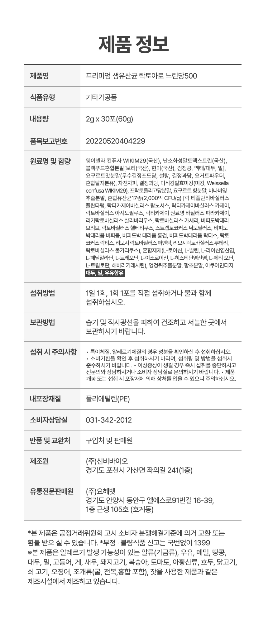 특허 유산균이 무려 500mg 함유!!